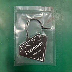 These air fresheners are made from absorbent cotton paper and can be customized into any shape you desire, with full color printing on both sides. Each product is individually packaged in a clear plastic bag and comes with an elastic hanging strap. Available scents include cologne, ocean, bluebell, white tea, osmanthus, gardenia, jasmine, and coco. Perfect for adding a fresh fragrance to any space with a personalized touch. 3″ L
