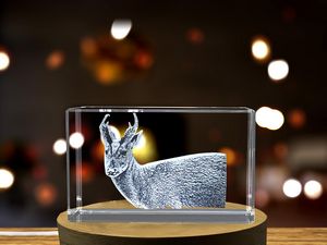 This exquisite muntjac deer crystal sculpture captures the delicate beauty and form of this delicate deer species. Engraved with intricate 3D, it makes a wonderful gift for wildlife and forest lovers.How it’s made: First, our designers create a unique and detailed 3D model. Then, our skilled technicians etch the 3D model into crystal using advanced laser technology.Includes FREE Round LED Base Light (plug-in)Packaged in a thoughtfully prepared keepsake gift box with a black silk inlay. 3″ L x 2″ W x 2″ Diameter