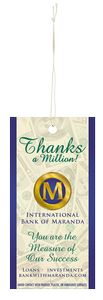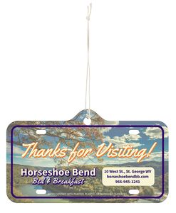 Custom air fresheners are an affordable and clever choice for advertising – people will look at your customer’s logo all day while in the car! Pair our key tag with an air freshener – great for car and dealer programs! Minimum 2.5″ x 2.5″, absolute maximum is 3.875″x6″. DISCLAIMER: AVOID CONTACT WITH PAINTED, PLASTIC OR VARNISHED SURFACES. Complies with Prop 65.