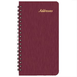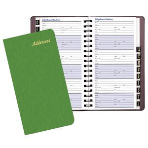 This address book has Shimmer Cover and wire bound. A-Z leatherette tabs, and 6 entrees per page. 3 1/2″ W x 6 1/2″ H