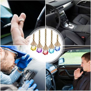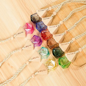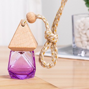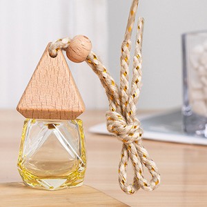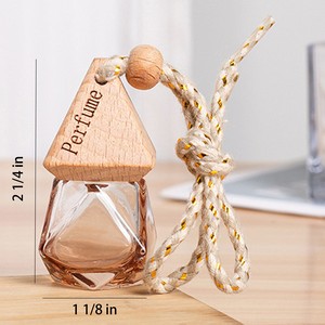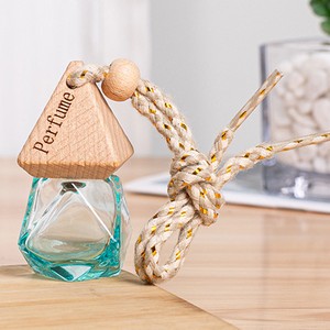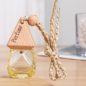 The car perfume bottle is made of high-quality think glass, with wood cap(not including perfume /essential oil). It can add perfume or air freshener into it. It also compact and portable, the bottle easily hangs and is adjustable to hang from a rear-view mirror, room bedroom, window sill, or any other place you want to bring a fresh scent. 1 1/8″ L x 2 1/4″ W