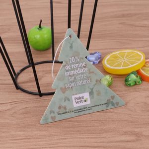 Whether hanging in the car or at home, this fragrance will always make people feel the atmosphere of Christmas. Crafted with special fragrance ions, this die-cut, full-color paper car air freshener is eco-friendly and promotes a healthier environment. Each air freshener is individually bagged to preserve its scent and includes a choice of black or white elastic string. Custom shapes of any size can be created, with a wide selection of delightful scents to choose from. 3 7/8″ L x 3 3/8″ W x 1/8″ H