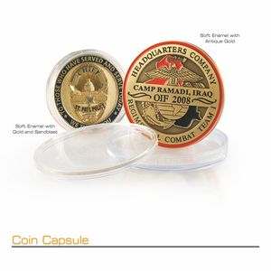 Historically used by military as a personal identifier known as a “challenge” coin. Police and fire departments use as a goodwill gesture. Corporations use coins as an achievement award that can be accessorized by adding an display easel or used as a paper weight.. Complies with Prop 65. 1 1/2″ L