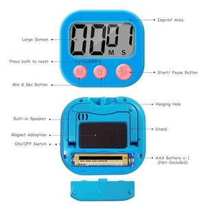 The Count Down & Up Digital Timer Alarm combines modern elegance and functionality in a durable plastic design. It features a magnetic back for easy attachment to metal surfaces like fridges or ovens, and a kickstand for convenient tabletop display. This versatile timer can count down from 99 minutes and 59 seconds or count up. It operates with 1 AAA battery (not included). Ideal for grand openings, trade shows, or seminars, this timer can be customized with your company’s logo or message, making it a perfect promotional giveaway. 2.51″ W x 2.75″ H x 0.78″ Thick