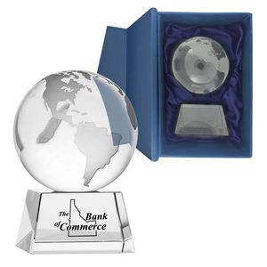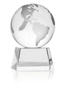 Crystal Globe With Base. Elegant & Outstanding Crystal Globe Award. Comes in Blue Presentation gift box. A fabulous corporate gift for the business executives and great recognition award for employee anniversaries, appreciation, outstanding performance, special achievement, accomplishment, promotions or retirement. The decorative & functional piece stays propped on any desktop or display shelf. Makes an unforgettable keepsake. 4 1/2″ H