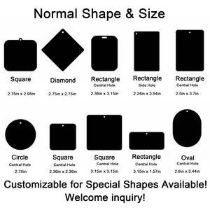 Transform any ordinary car accessory into a personalized masterpiece with our custom air fresheners! Simply upload your favorite photos, logos, or designs and we’ll print them in stunning, fade-resistant color. With a variety of shapes to choose from, including circles, squares, hearts, and classic rectangles, you can customize your air freshener to match your unique style. Not only do our air fresheners look great, but they also pack a powerful punch against odors. Enjoy a consistent, subtle fragrance that effectively eliminates unwanted smells like smoke, food, or pet odors, leaving your car smelling fresh and clean. With so many options to choose from, you can create a truly one-of-a-kind accessory that reflects your personality and keeps your car smelling great for months to come. 3″ Diameter