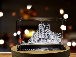 Premium crystal, engraved in 3-D with the National-Nederlanden building Invoke stunning memories of special moments spent visiting Prague, Czech Republic The Dancing House was originally named “Fred and Ginger” after Fred Astaire and Ginger Rogers due to its resemblance to a pair of dancers Designed by architect Vlado Milunic in cooperation with architect Frank Gehry, the Dancing House is a true illusion! 3″ L x 2″ W x 2″ Diameter