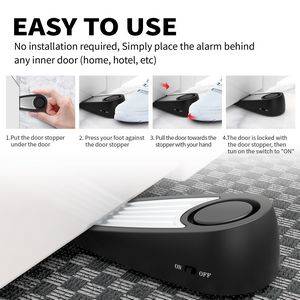 The burglar door stopper consists of a stainless steel cap, a high quality plastic body and a dampening rubber bottom for durability. In addition, the alarm’s volume is up to 130 decibels to scare off intruders and alert homeowners, making it a great choice for you and your family’s safety. The door stop alarm in “OFF” status, it can be used as common rubber base door wedge. Anti-slip design makes the door not easy to be pushed, so it can maximize your safety. 3 7/8″ L x 1 3/4″ W x 1 1/8″ Thick