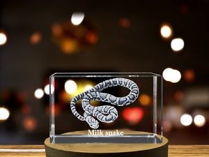 Step into the enchanting realm of serpents with our exquisite 3D Engraved Crystal “Milk Snake” sculpture. Meticulously crafted, this crystal masterpiece beautifully captures the allure and distinctive patterns of the milk snake. How it’s made: First, our designers create a unique and detailed 3D model. Then, our skilled technicians etch the 3D model into crystal using advanced laser technology. Includes FREE Round LED Base Light (plug-in). 3″ L x 2″ W x 2″ Diameter