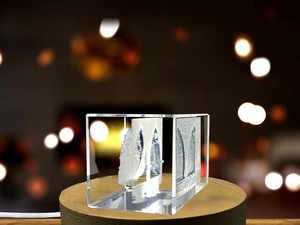 Fonti Medieval 3D Engraved Crystal Trophy Award – LED Base Keepsake for Architectural Recognition
