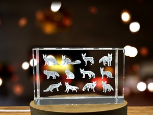 Genus Vulpes 3D Engraved Crystal Trophy Award – Recognition Gift with LED Base for Wildlife Art