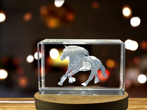 Gypsy Vanner Horse Recognition Trophy – Exquisite 3D Engraved Crystal with LED Base