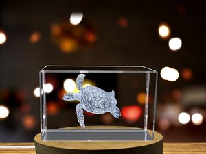 the vibrant beauty of coral reefs with this intricately carved hawksbill sea turtle paperweight. Laser-etched crystal perfectly depicts the patterned shell and hooked beak of this endangered species.How it’s made: First, our designers create a unique and detailed 3D model. Then, our skilled technicians etch the 3D model into crystal using advanced laser technology.Includes FREE Round LED Base Light (plug-in)Packaged in a thoughtfully prepared keepsake gift box with a black silk inlay. 3″ L x 2″ W x 2″ Diameter
