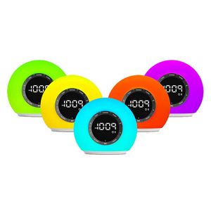 This Sunrise Alarm Clock Radio is the ultimate bedside companion for a rejuvenating morning routine. Wake up gradually to a simulated sunrise, starting softly and gradually brightening to gently rouse you from sleep. Customize your sleep routine by choosing to wake to light, Bluetooth audio, or FM radio. Set the mood in your room with your choice of 11 LED color changing modes. Keep your devices powered up by charging your smartphone, tablet, or any USB-compatible gadget right from the alarm clock. With a sleek and stylish design, this digital clock will complement any home décor. 7.25″ L x 6.5″ W x 6.25″ H