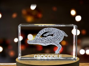 Impressive 3D Engraved Crystal of a Mighty Crocodile – Perfect for Wildlife Enthusiasts and Reptile