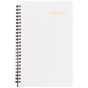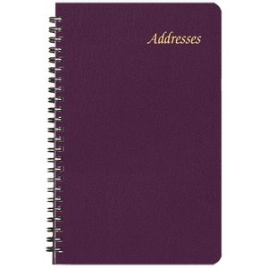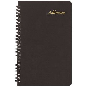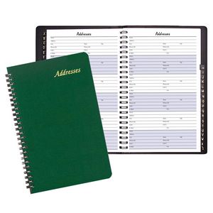 This address book has Leatherette Cover and wire bound. A-Z leatherette tabs, and 6 entrees per page. 8 1/2″ L x 5 1/2″ W