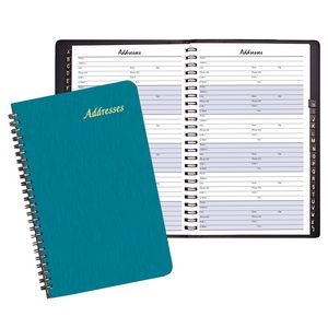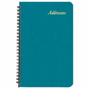 This address book has Shimmer Cover and wire bound. A-Z leatherette tabs, and 6 entrees per page. 8 1/2″ L x 5 1/2″ W