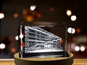 Premium crystal, engraved in 3-D with Le Centre Pompidou – home to Europe’s largest modern art museum, vast public library and music research center Invoke stunning memories of visiting Beaubourg, France and witnessing the famous inside-out building with its exposed structural, mechanical and circulation systems Le Centre Pompidou is high-tech architecture at its best thanks to collaboration from Richard Rogers, Su Rogers, Renzo Piano, & Gianfranco Franchini. 3″ L x 2″ W x 2″ Diameter
