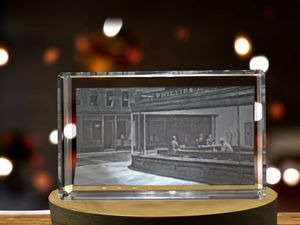 “Nighthawks” has become a symbol of mid-century cool, urban solitude, and architectural grandeur. On 3d Art crystal, a scene of a mid-century night is framed. It will evoke the calm and charm of mid-century New York. Illuminated decor to adorn your home or as a unique gift Exclusive one-of-a-kind design by AB Crystal Collection. 3″ L x 2″ W x 2″ Diameter