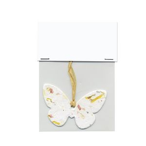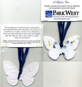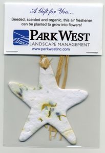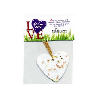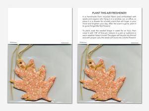 This air freshener is handmade from recycled fibers and embedded with seeds and organic oils, creating naturally scented air. Hand it in a window, office or car, or place it in a drawer for a lovely scent that will linger in your mind and brighten your day. After its use is done, you can recycle it in the ground to grow flowers. Header card is 2.5″h x 3.75″ w. 4.25″ W x 4.5″ H