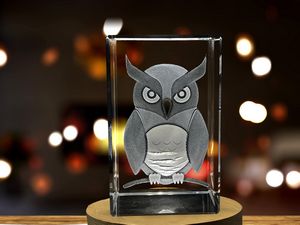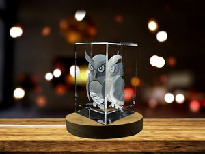 Owl Symbolism Recognition Trophy Award – 3D Engraved Crystal Decor with Illuminated LED Base