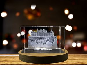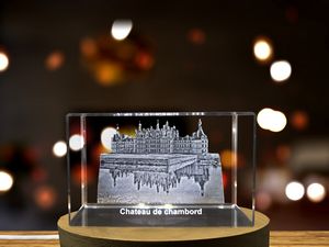 Step into a world of royal elegance and architectural splendor with this captivating 3D engraved crystal, showcasing the iconic Chateau de Chambord. How it’s made: First, our designers create a unique and detailed 3D model. Then, our skilled technicians etch the 3D model into crystal using advanced laser technology. Includes FREE Round LED Base Light (plug-in) Packaged in a thoughtfully prepared keepsake gift box with a black silk inlay. 3″ L x 2″ W x 2″ Diameter