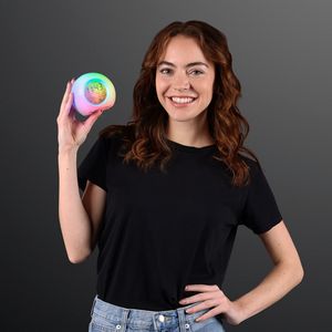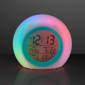 Never lose time again with Round LED Alarm Clock. Contemporary Mood Light-Up Clock transitions through an array of colors creating a gentle and calming atmosphere. Large circular screen displays time, day of the week, month and date, as well as temperature. Easy to set up, this fun novelty makes for a great gift for kids and adults alike for Birthdays, Christmas, or any other occasion. To activate, remove the pull tab located on the underside. To program, refer to the instructions provided. Use the buttons on the bottom of the clock to set the time and date. Temperature is set to Celsius, to change to Fahrenheit press the down button once after setting the time and date. Comes ready to use with 3 replaceable AAA batteries. Complies with CPSIA, Prop 65. 4.03″ L x 3.63″ W x 3.56″ H