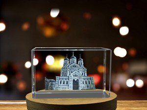 This exquisite 3D engraved crystal gift features the iconic Alexander Nevsky Cathedral. Featuring a mesmerizing and intricately engraved design inspired by the famous Estonian landmark.How it’s made: First, our designers create a unique and detailed 3D model. Then, our skilled technicians etch the 3D model into crystal using advanced laser technology. Includes FREE Round LED Base Light (plug-in)Packaged in a thoughtfully prepared keepsake gift box with a black silk inlay. 3″ L x 2″ W x 2″ Diameter