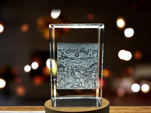 Premium crystal, expertly engraved in 3D with a depiction of Hieronymus Bosch’s triptych work The scenes depicted on the panels have been pondered by many scholars and are open to interpretation The included LED base light brings Bosch’s masterpiece to life in 3D! Perfect illuminated decor for your art collection or as a unique gift. 3″ L x 2″ W x 2″ Diameter