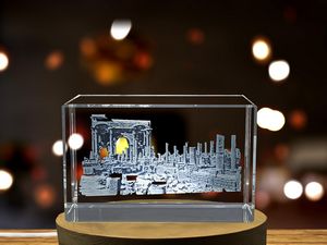 The rich history of Timgad with this exquisite 3D engraved crystal gift. This beautifully crafted crystal piece captures the grandeur of ancient Roman ruins, making it the perfect addition to any collection or decor.How it’s made: First, our designers create a unique and detailed 3D model. Then, our skilled technicians etch the 3D model into crystal using advanced laser technology. Includes FREE Round LED Base Light (plug-in)Packaged in a thoughtfully prepared keepsake gift box with a black silk inlay. 3″ L x 2″ W x 2″ Diameter