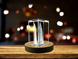 Tower of Our Lady 3D Engraved Crystal Keepsake Award with LED Base – Recognition of Faith and