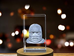This stunning crystal statue is a replica of the famous Olmec Colossal Heads found in Mexico. It features intricate 3D engraving depicting the detailed facial features of an Olmec head. This unique crystal gift makes a thoughtful present for history buffs, art lovers or anyone interested in ancient Mesoamerican civilizations.How it’s made: First, our designers create a unique and detailed 3D model. Then, our skilled technicians etch the 3D model into crystal using advanced laser technology.Includes FREE Round LED Base Light (plug-in)Packaged in a thoughtfully prepared keepsake gift box with a black silk inlay. 3″ L x 2″ W x 2″ Diameter