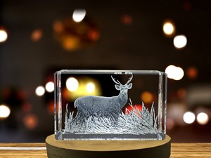 Admire the rare beauty of the hog deer in this finely carved crystal sculpture. A thoughtful gift celebrating the smallest species of deer. Intricately carved in sparkling 3D, it captures the delicate stance of a hog deer amidst lush foliage.Includes FREE Round LED Base Light (plug-in)Packaged in a thoughtfully prepared keepsake gift box with a black silk inlay. 3″ L x 2″ W x 2″ Diameter